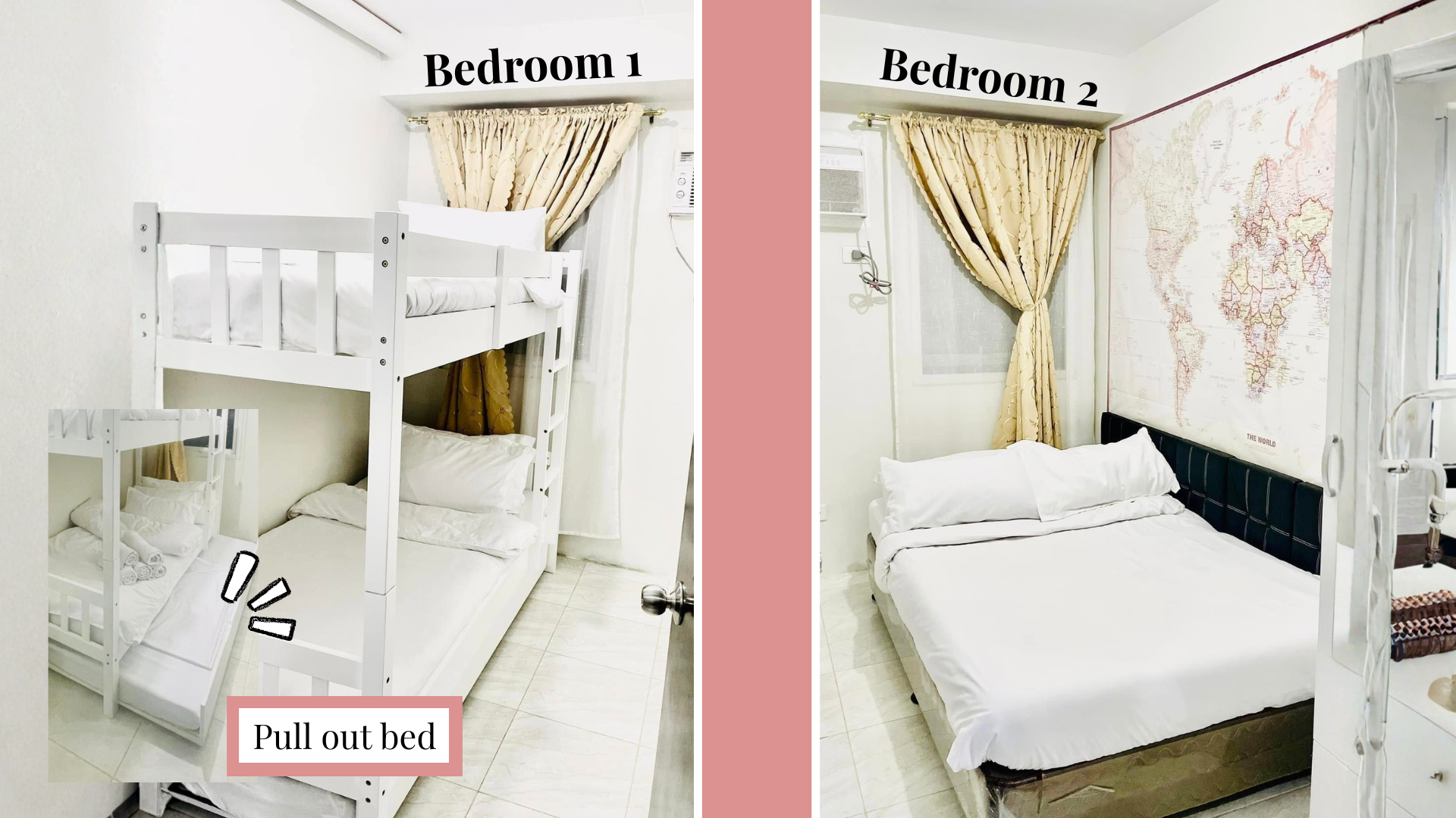 Note: Guests have the option to book either one one-bedroom or the full two-bedroom unit. For one-bedroom bookings, the unused room will remain securely locked, and the rate will be adjusted accordingly.